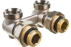 Фитинг двойной угловой со встроенным шаровым краном 3/4" Stout (для двухтрубной системы)