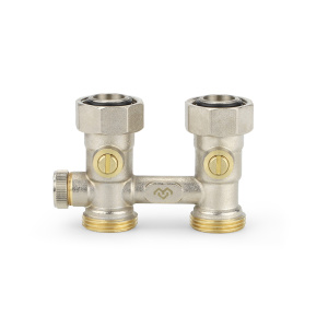 Фитинг двойной угловой со встроенным шаровым краном (с байпасом) Varmega 3/4"(18)ЕКx3/4"(18)ЕК