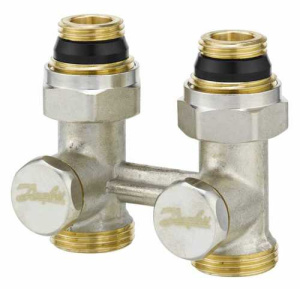 Фитинг двойной со встроенным шаровым краном 1/2"*3/4" (никель) RLV-KS Danfoss (003L0220)