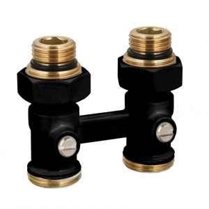 Фитинг двойной со встроенным шаровым краном Vieir Мультифлекс (черный, с комплектом адаптеров )