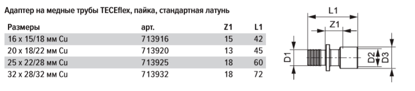 Адаптер TECE TECEflex на медные трубы латунь - переходник с труб из нержавеющей стали или меди на систему TECEflex, подходит только для пайки.