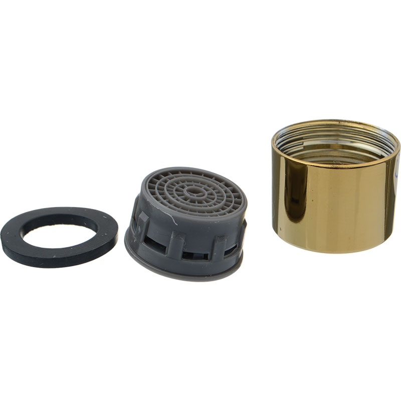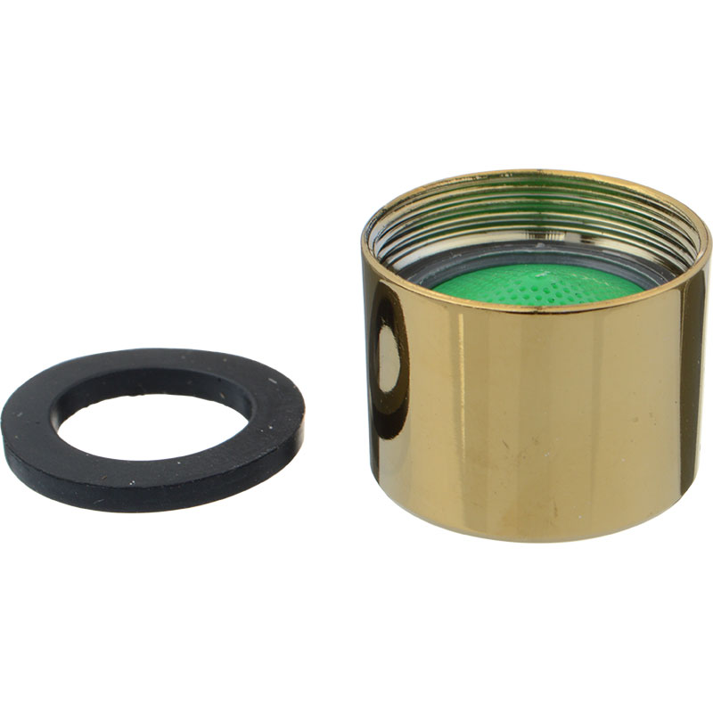 Аэратор латунный M22*1 вн.рез., пласт.сетка, золото MELODIA MKP20530N предназначен для насыщения воздухом водной струи, выходящей из смесителя. Аэратор рассеивает воду, смешивает ее с воздухом и тем самым уменьшает расход воды без заметного снижения интенсивности потока.