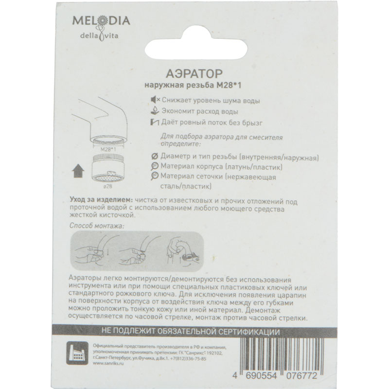 Аэратор Melodia М28x1 пластиковый нар.рез., нерж.сетка (MKP20522BL)