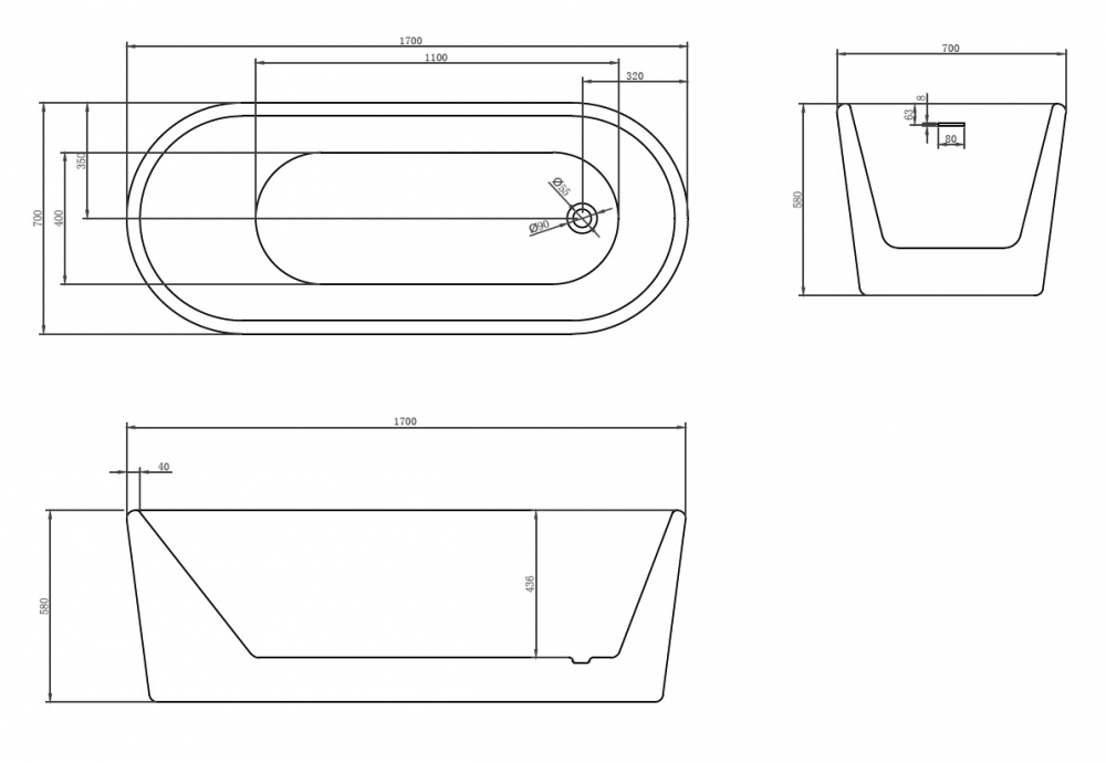Акриловая ванна ABBER AB9272-1.7 170х70