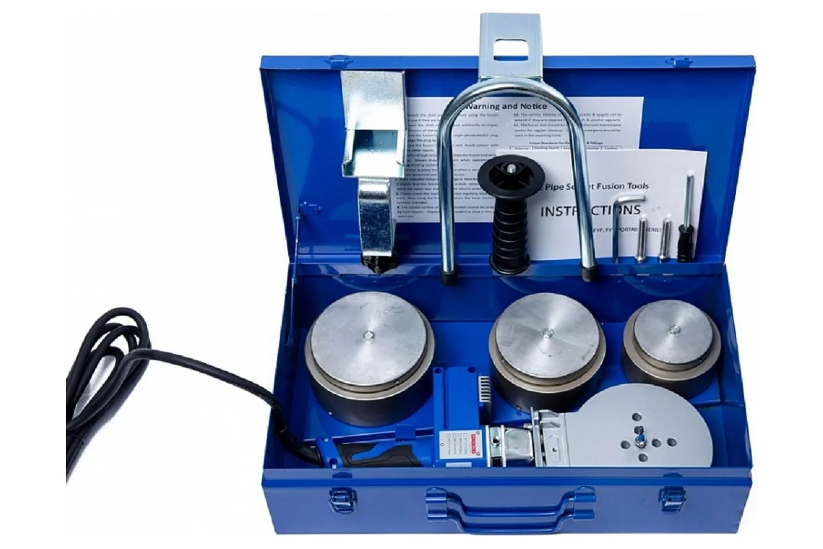 Предназначен для раструбной сварки полипропиленовых труб диаметром до 110мм. Имеет цифровую регулировку температуры. В стальном кейсе с насадками 75, 90, 110мм, струбциной и опорой. Мощность 1200Вт.