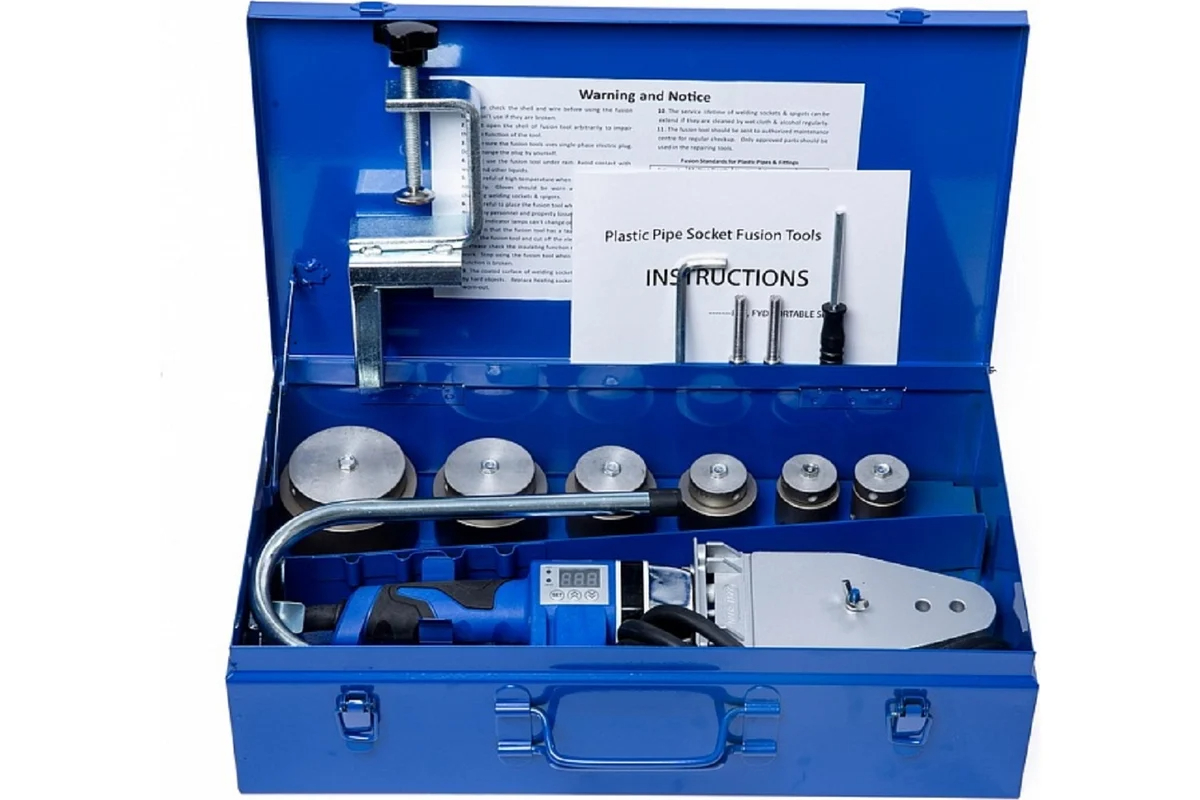 Компактный и удобный аппарат для сварки в раструб труб и фасонных деталей из ПЭ, ПП, ПВДФ и ПБ. Высококачественное и долговечное антиприлипающее тефлоновое покрытие на насадках и на нагревательном элементе. Встроенное крепление для струбцины и подставки даёт возможность для универсального использования в рабочих условиях.