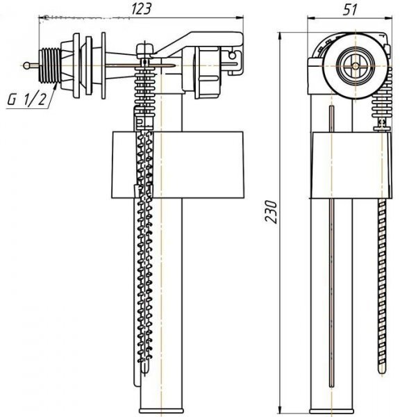 Арматура для смывного бачка АНИ (боковой подвод 1/2" (латунь), 1-уровень, кнопка пласт. хром) АНИ пласт (WC8020C)