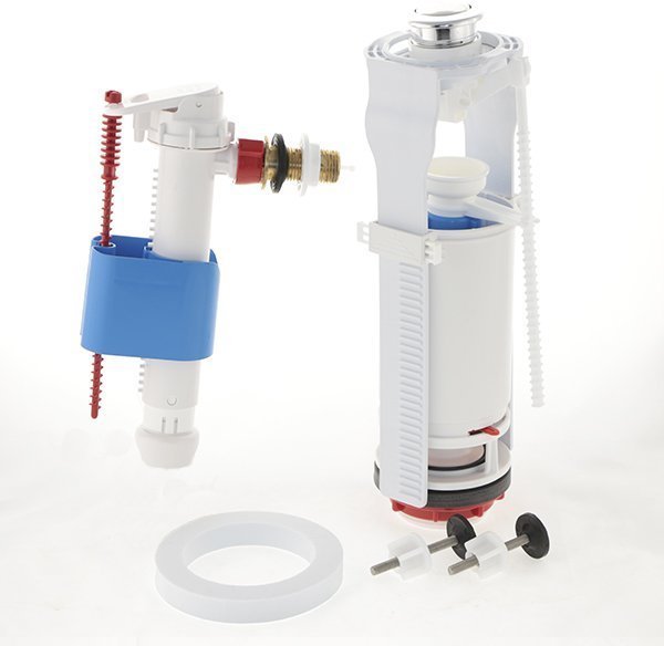 Набор для бачка унитаза. Наливной механизм с боковой подводкой и латунной резьбой диаметром G1/2. Сливной механизм хромированная кнопка с одним режимом слива