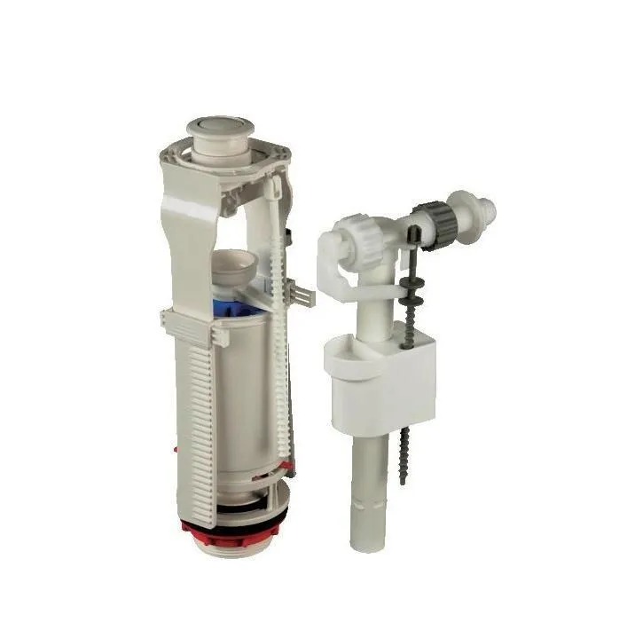Набор для бачка унитаза. Наливной механизм с боковой подводкой и пластиковой резьбой диаметром G 1/2. Сливной механизм белая кнопка с одним режимом слива