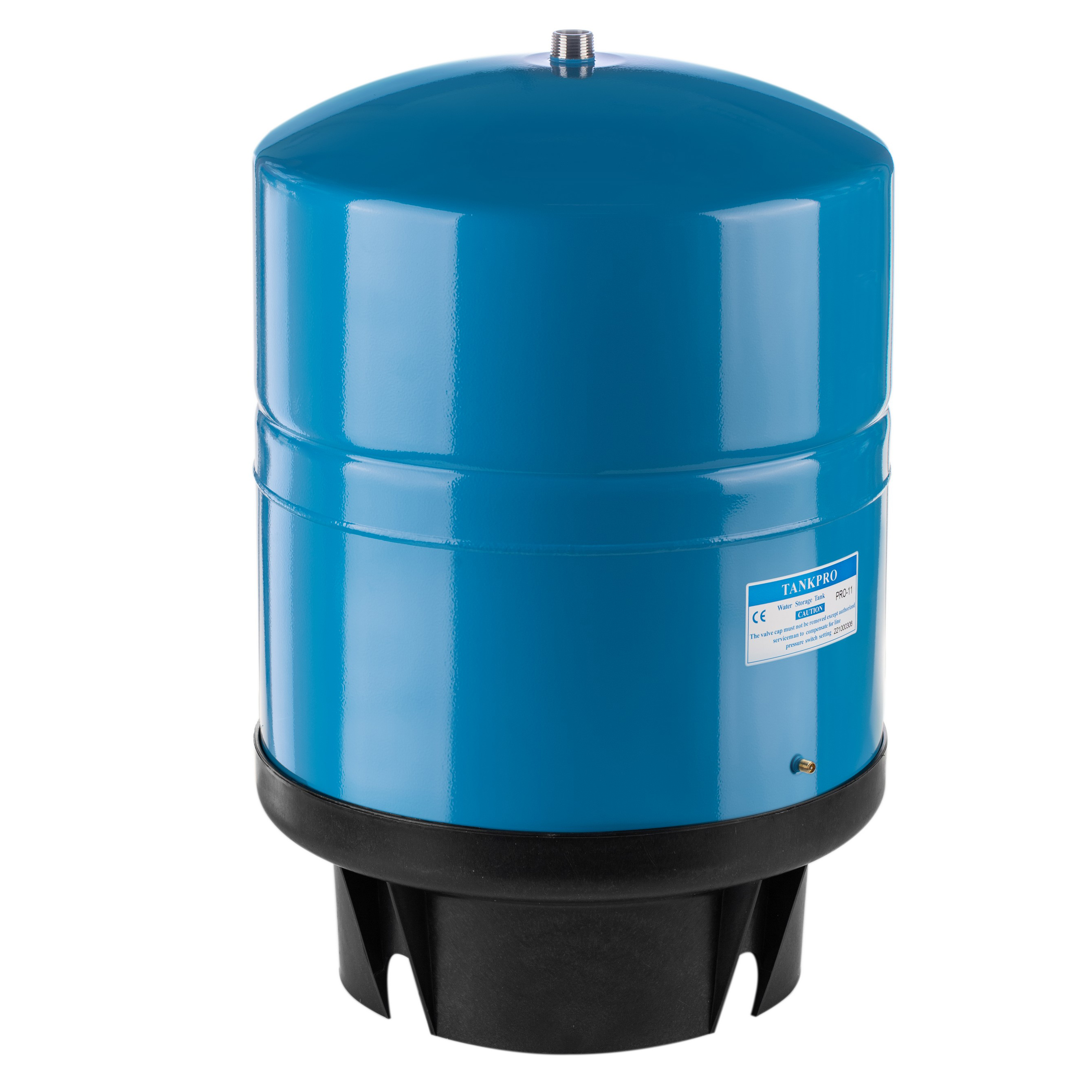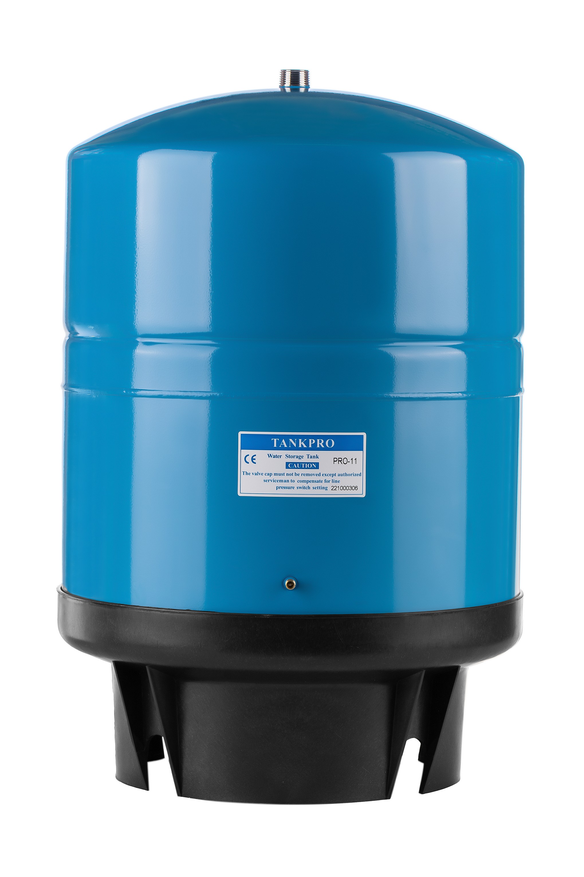 таллический накопительный бак RO 11 Gall 25677 используется в системах обратного осмоса для хранения и подачи очищенной воды. Вода в баке находится под давлением, необходимым для её транспортировки в точки потребления. Полный объём бака - 40 л, объём воды - до 70% от полного объёма - показатель зависит от давления в магистрали. Бак комплектуется ниппелем для контроля давления внутри бака - при необходимости можно спустить, либо подкачать насосом.