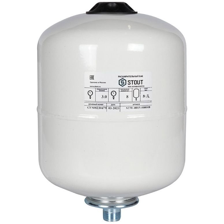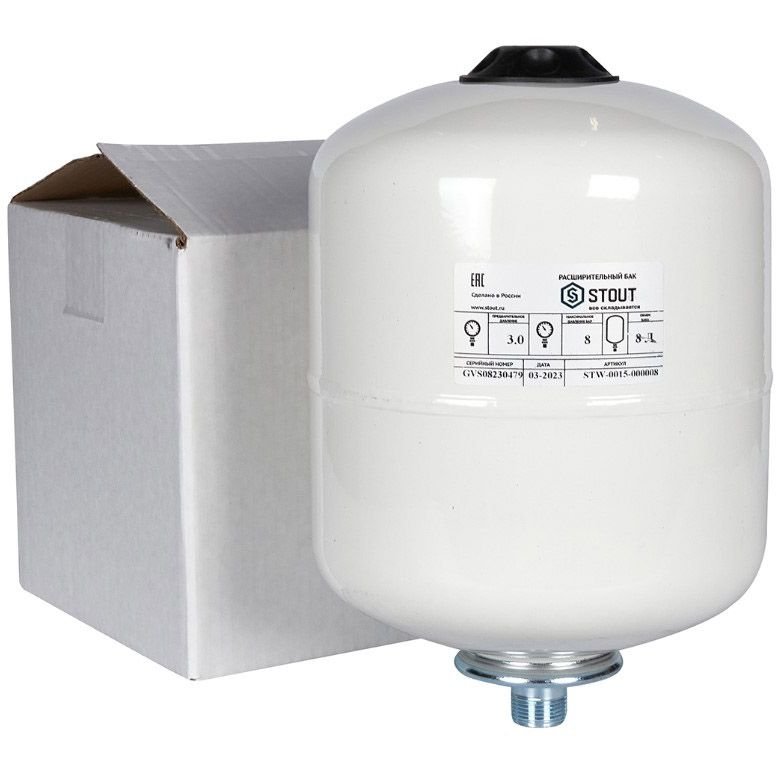 Бак расширительный для ГВС и гелиосистем Stout 8 л. (белый, вертикальный) (STW-0015-000008)