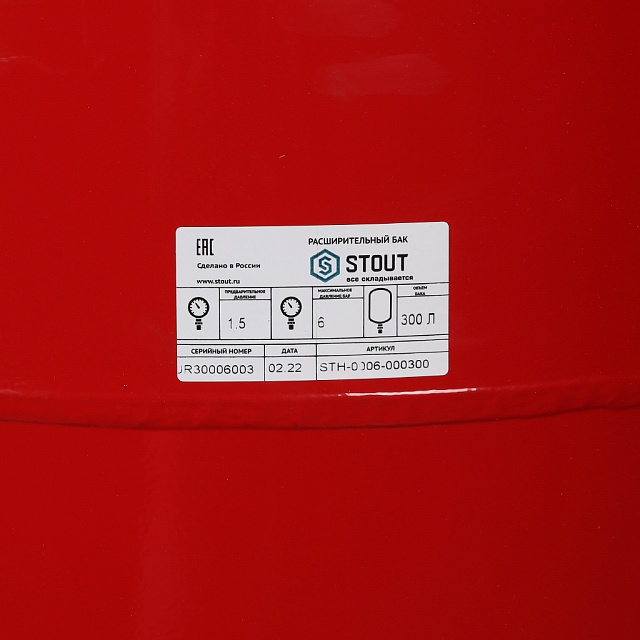 Бак расширительный для систем отопления Stout 300 л. (6 бар, красный) (STH-0006-000300)