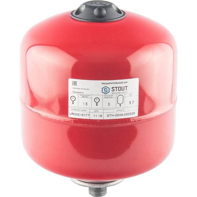 Бак расширительный для систем отопления Stout 5 л. (5 бар, красный) (STH-0004-000005)