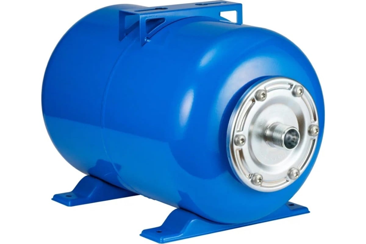 Корпус из высококачественной стали. Металлический фланец. Краска с защитой от ультрафиолетовых лучей. Воздушный клапан для контроля давления воздуха. Универсальная площадка для крепления насоса. Горизонтальная компоновка.
