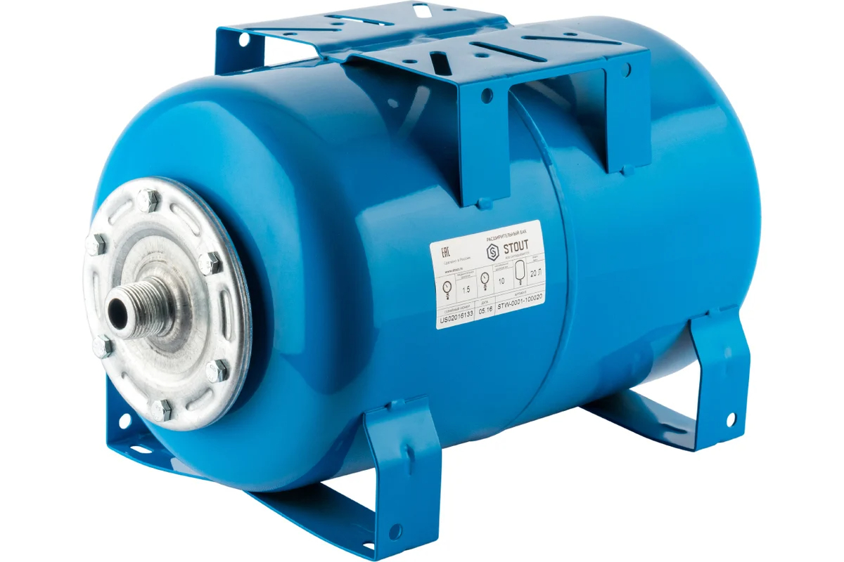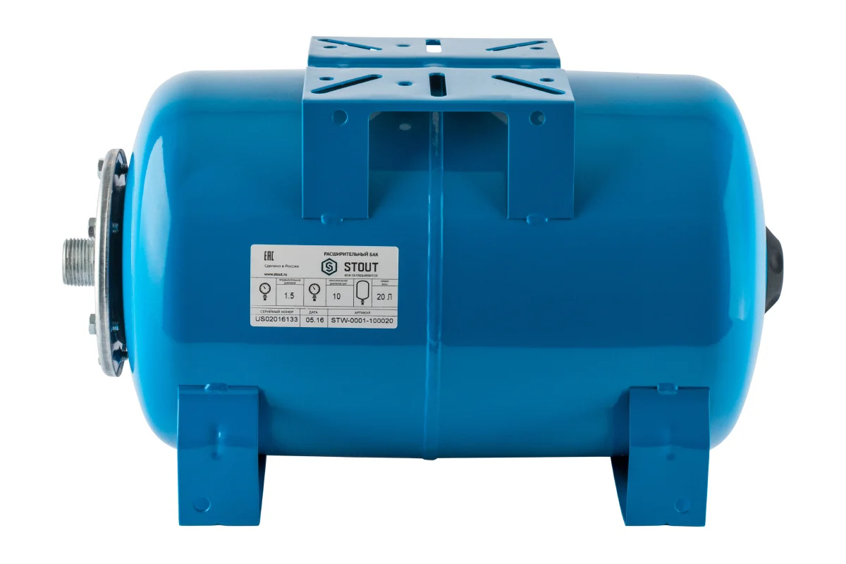 Бак расширительный для систем водоснабжения Stout 20 л. (10 бар, синий, горизонтальный) (STW-0001-100020)