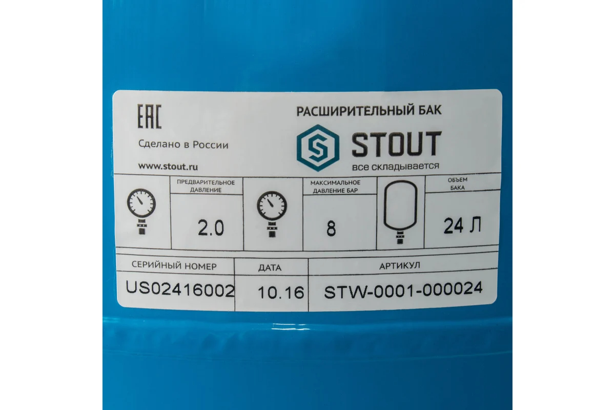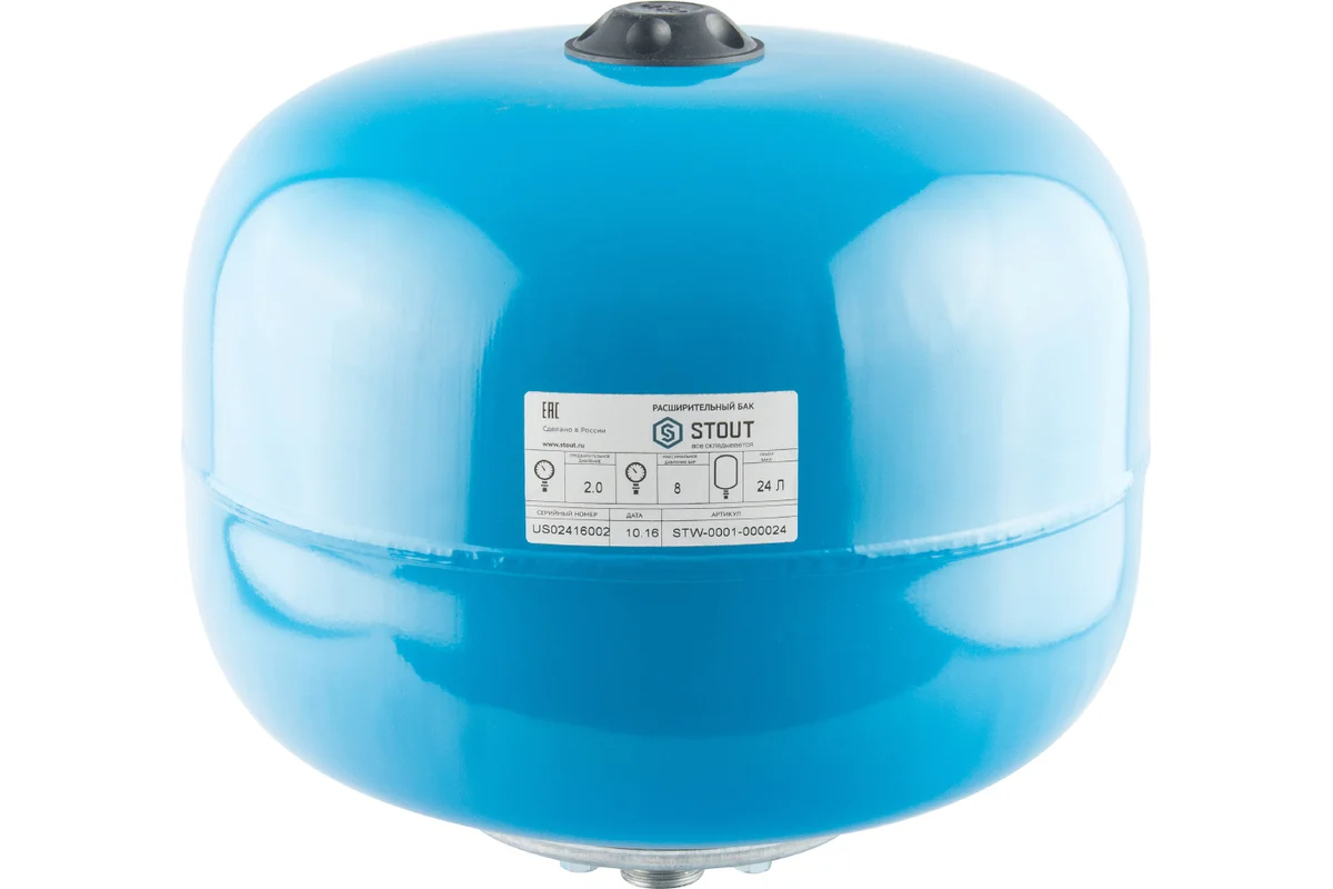 Бак расширительный для систем водоснабжения Stout 24 л. (10 бар, синий, вертикальный) (STW-0001-000024)