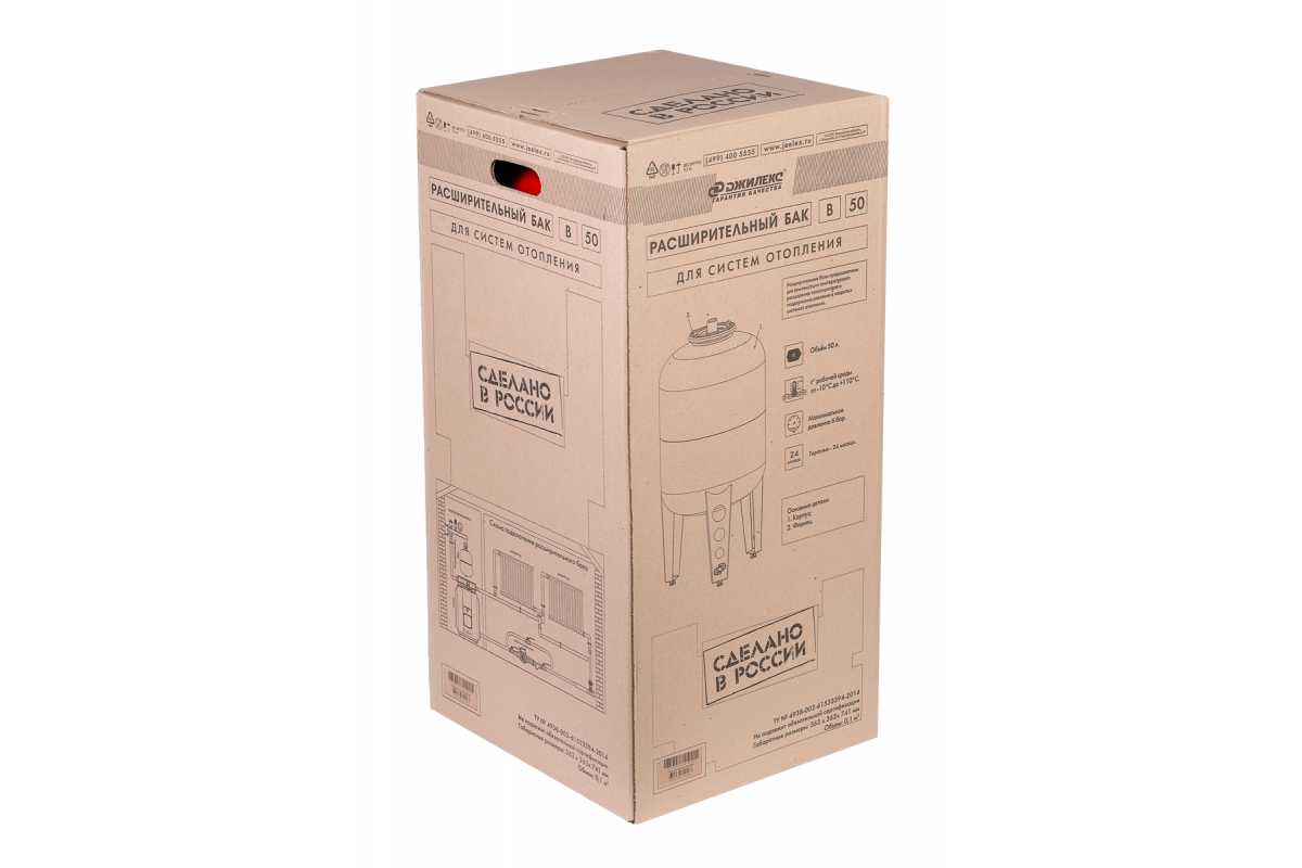 Бак расширительный Джилекс 50 л имеет металлический фланец, вертикальную компоновку на ножках и рекомендуется для компенсации температурных расширений теплоносителя и поддержания давления в замкнутых системах отопления.