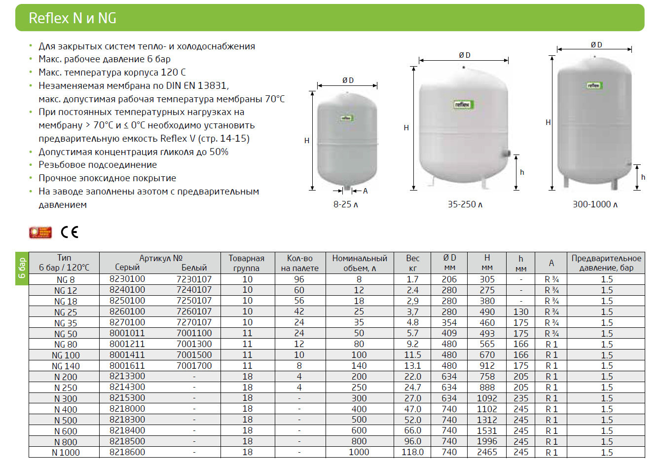 Бак расширительный Reflex для систем отопления 25 л. N (8206301 / 8260100)