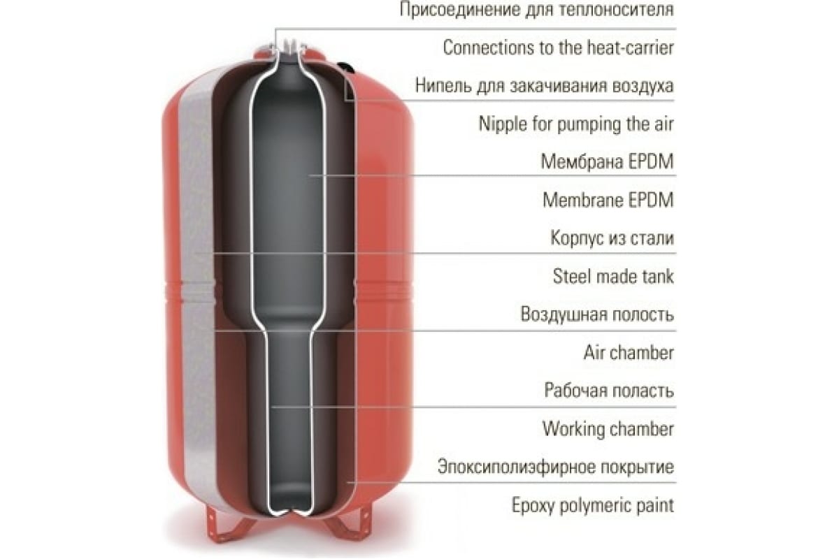 Расширительный бак предназначен для компенсации температурного расширения теплоносителя в замкнутых системах отопления. В качестве теплоносителя допускается использование воды или водного раствора гликоля с концентрацией до 50%.