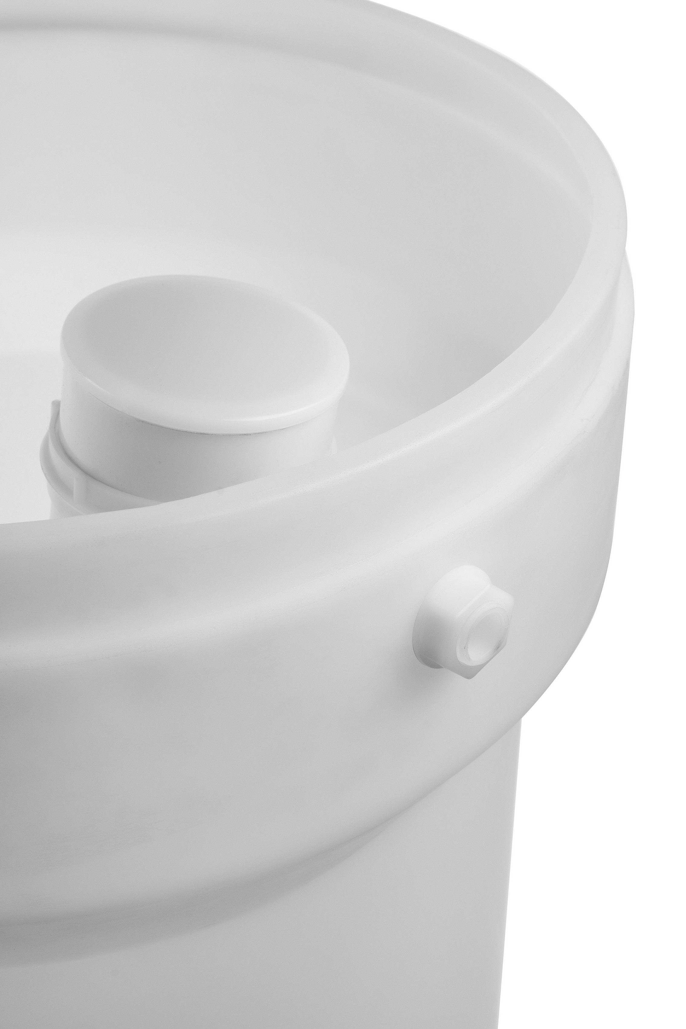 Баки для регенерирующих растворов (соль, перманганат калия) изготавливают из полиэтилена. В состав материала, из которого изготовлен бак, как правило, включают ингибиторы ультрафиолета, что повышает их стойкость к солнечному свету. Баки поставляются в комплекте с литыми крышками, собранными системами забора регенеранта и придонными решетками (фальшдно). Износостойкие полимерные материалы и новейшие производственные технологии обеспечивают их надежную эксплуатацию.