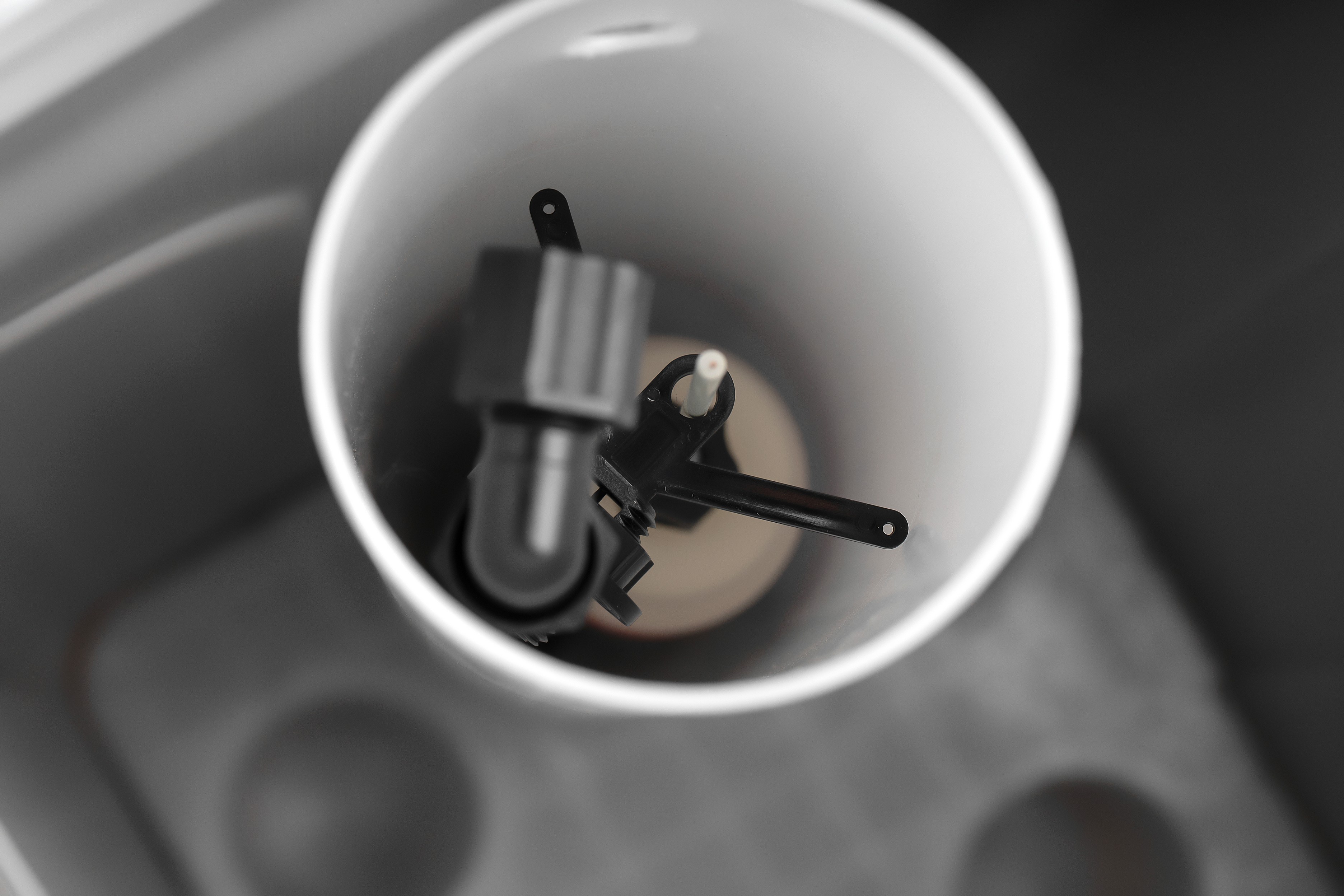 Рассольная шахта, внутри которой смонтирована всасывающая система, шариковый отсечной клапан и штуцер для соединения солевого бака с управляющим клапаном.