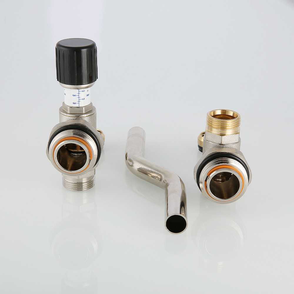Место установки тупикового байпаса – противоположная относительно точек подключения сторона коллекторного узла. Материал корпуса – латунь марки CW617N, перепускной трубки – медь, уплотнений – EPDM. Гальванопокрытие – никелирование. Изделие применимо при температуре не выше 120 °C, давлении до 10 бар. Диапазон настройки перепада давлений – 20–60 кПа, пропускная способность Kvs – 4,33 м3/ч.