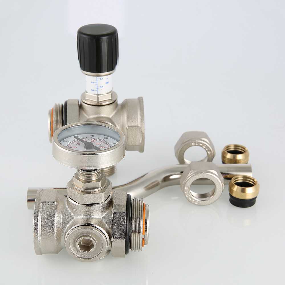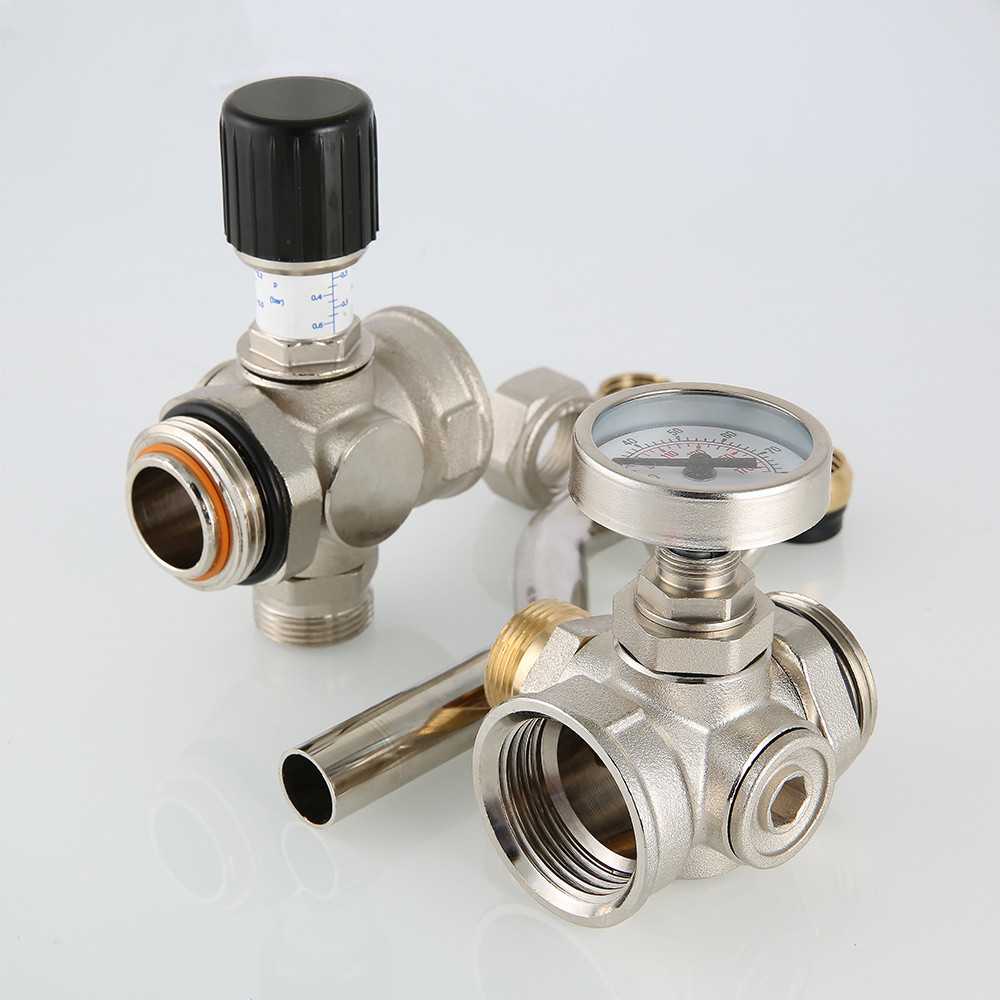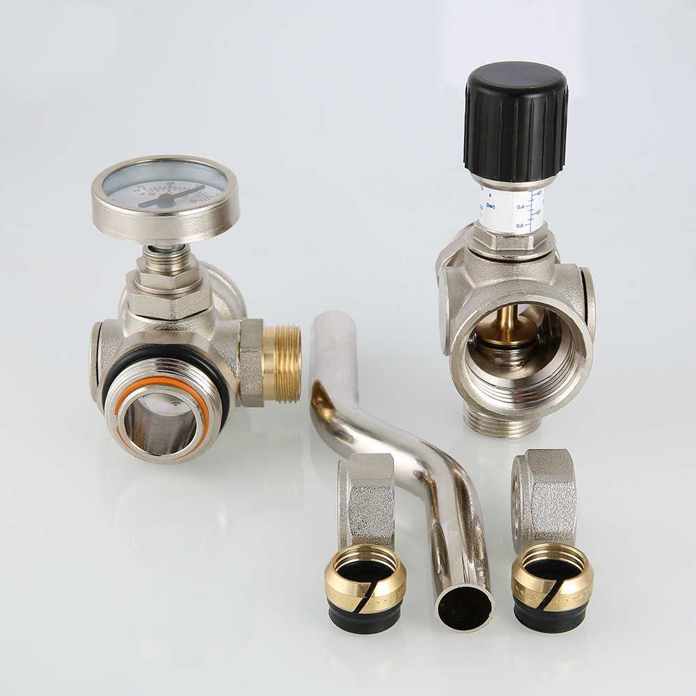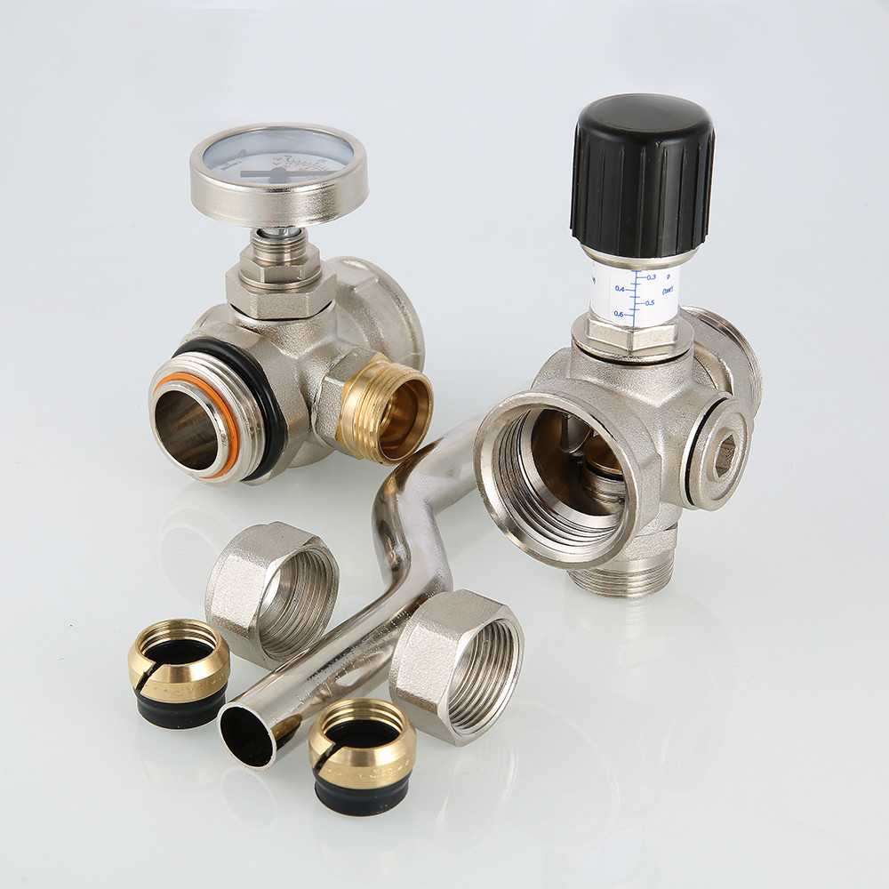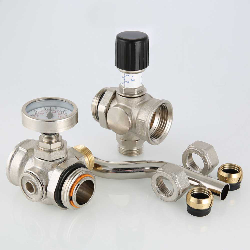 Байпас VT.0667T – проходной (монтируется перед коллекторным узлом), комбинируется с погружным термометром VT 0617. Детали его корпуса выполнены горячим прессованием из латуни марки CW617N, никелированы, перепускная трубка – медная, никелированная. Материал уплотнений – эластомер EPDM. Максимальная рабочая температура теплоносителя – 120 °C, номинальное рабочее давление – 10 бар. Диапазон настройки перепада давлений – 20–60 кПа, пропускная способность Kvs – 4,33 м3/ч.