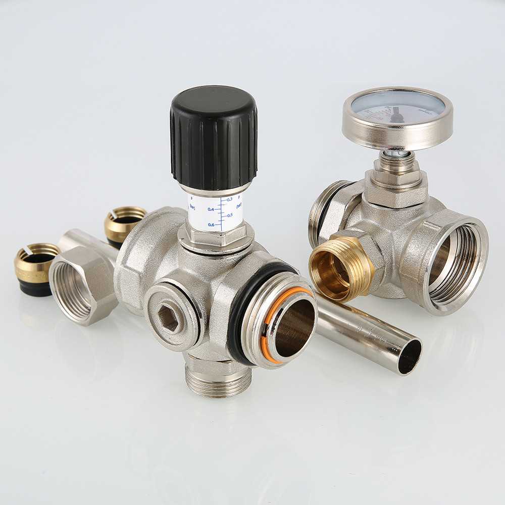 (VT.0667T.0) Байпасы VALTEC с перепускным клапаном применяются совместно с коллекторными блоками VTc 594 EMNX и 596 EMNX для перенаправления потока теплоносителя к обратному коллектору в случае, когда расход через коллекторные петли уменьшается ниже заданного значения. Это позволяет сохранять гидравлические характеристики системы независимо от положения органов управления коллекторных петель (ручные, термостатические клапаны и др.), защитить насос от работы «на закрытую задвижку».