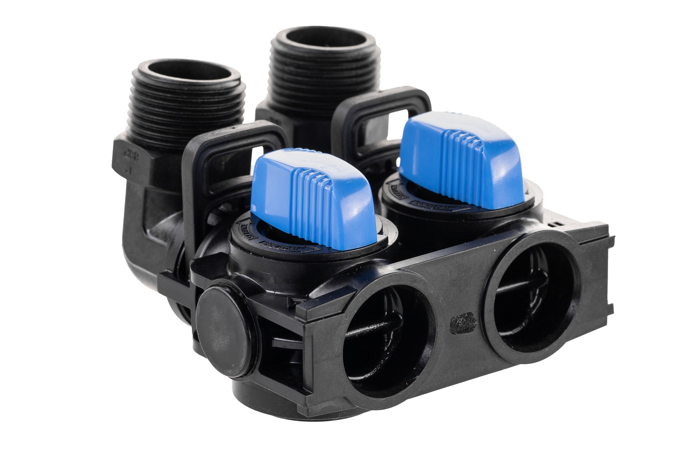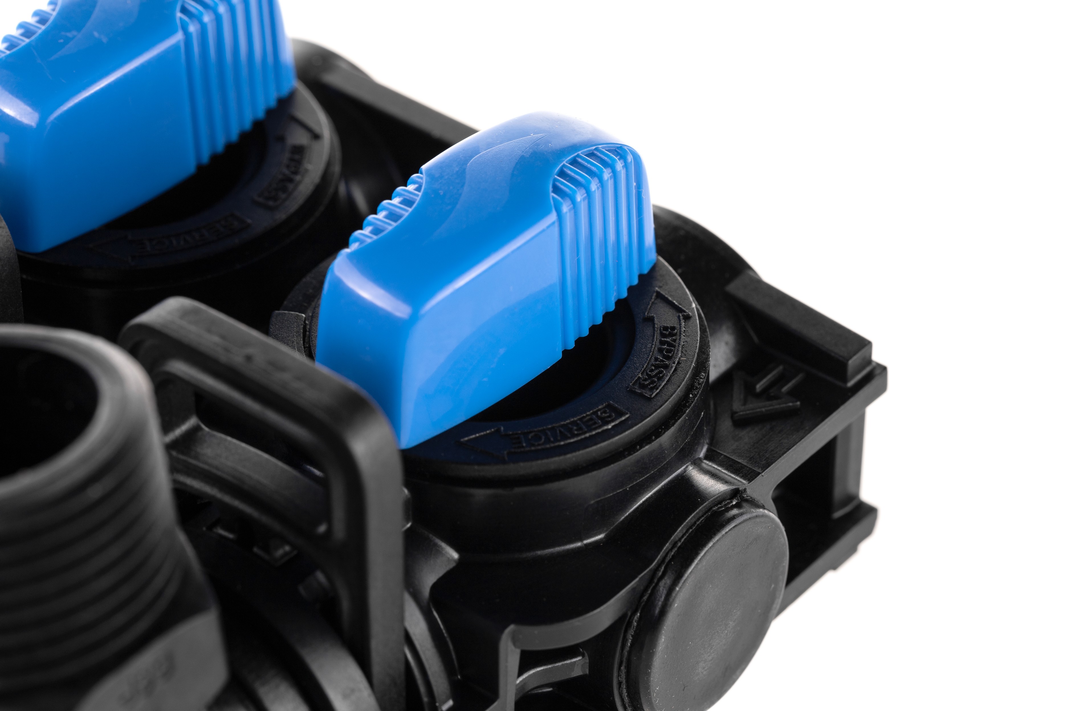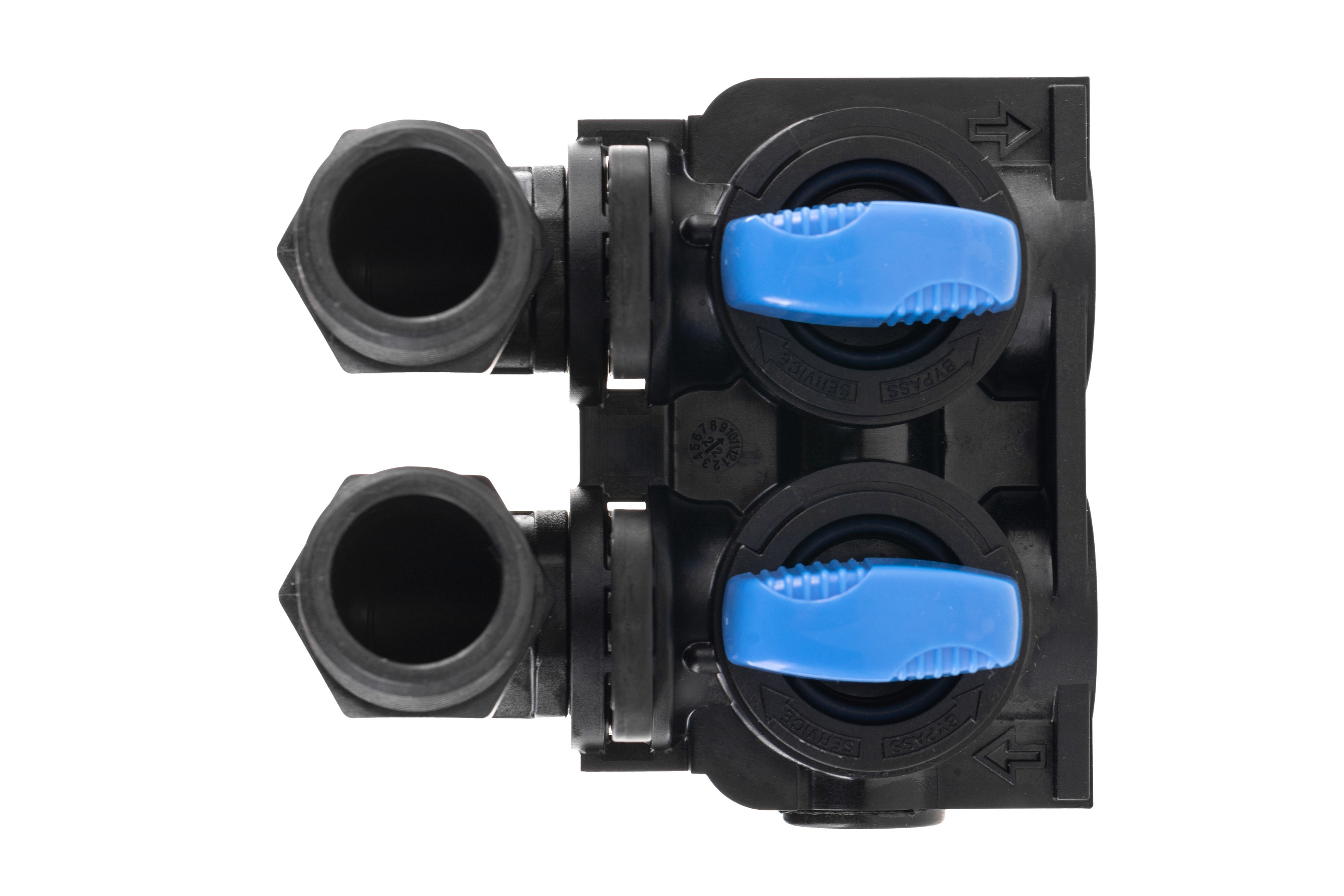 Байпас Проматик предназначен для удобного и компактного присоединения водоподготовки с клапаном Проматик 100 к системе водоснабжения. С его помощью можно быстро отключить фильтр во время обслуживания или ремонта.