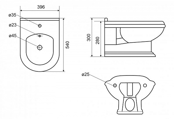 Биде подвесное Cezares King Palace 540х396х300 (CZR-618-TH)