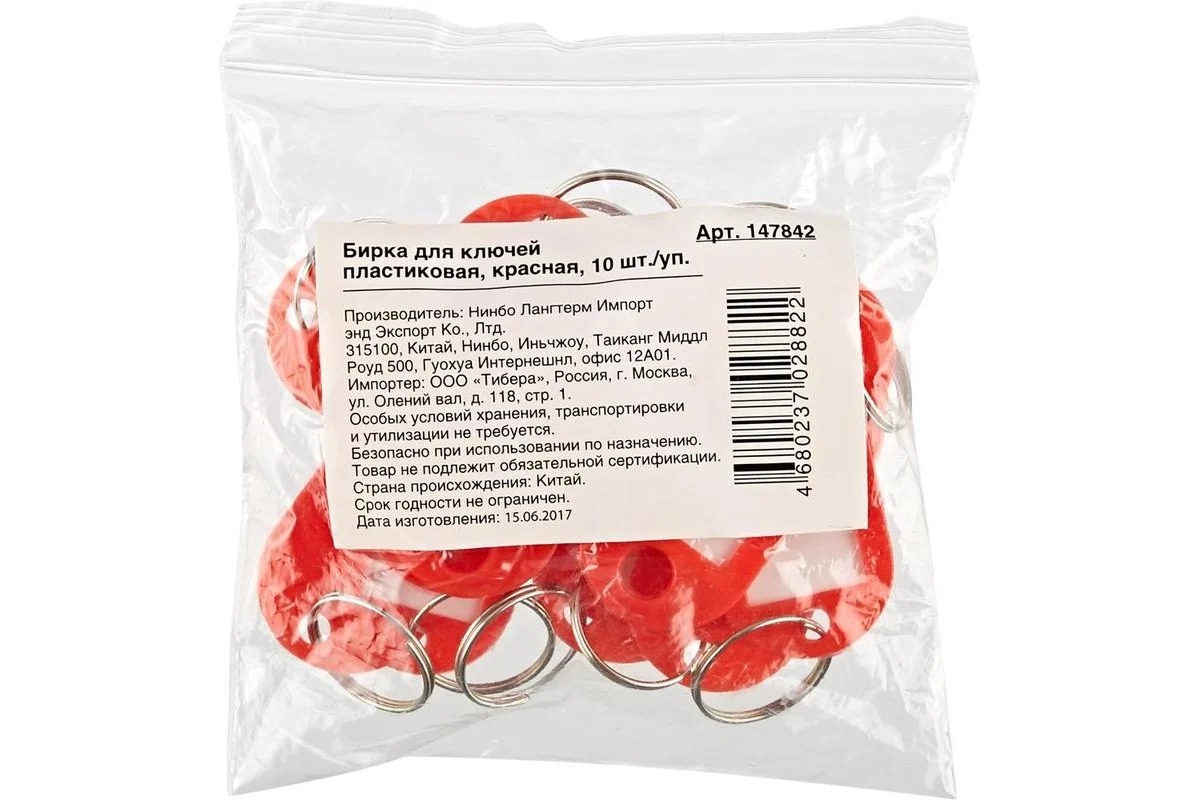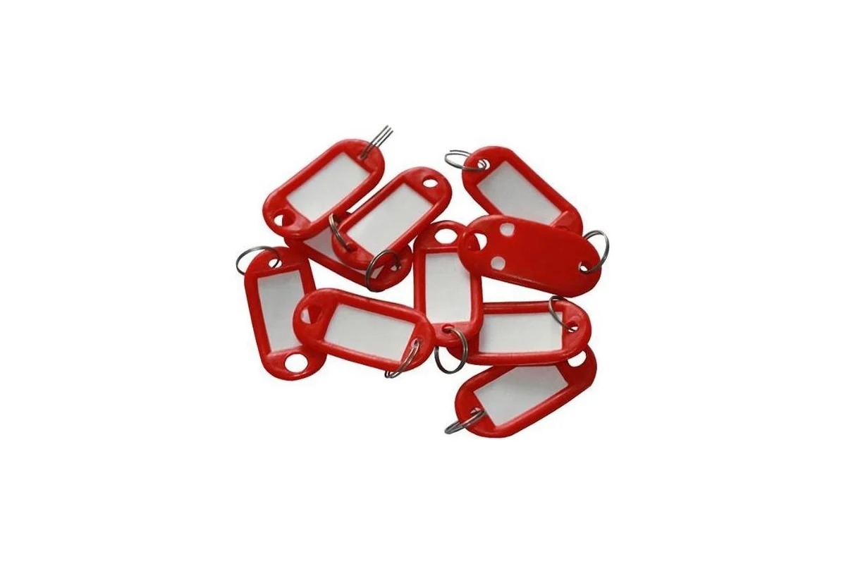 Бирки для ключей поставляются комплектом по 10 штук в упаковке. Бирка для ключей изготовлена из пластика, снабжена металлическим кольцом и бумажной этикеткой с защитной пластиковой пленкой.
