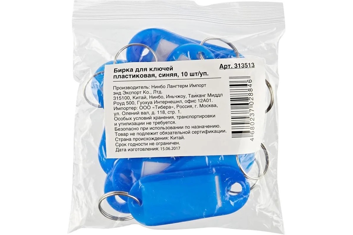 Бирки для ключей поставляются комплектом по 10 штук в упаковке. Бирка для ключей изготовлена из пластика, снабжена металлическим кольцом и бумажной этикеткой с защитной пластиковой пленкой.