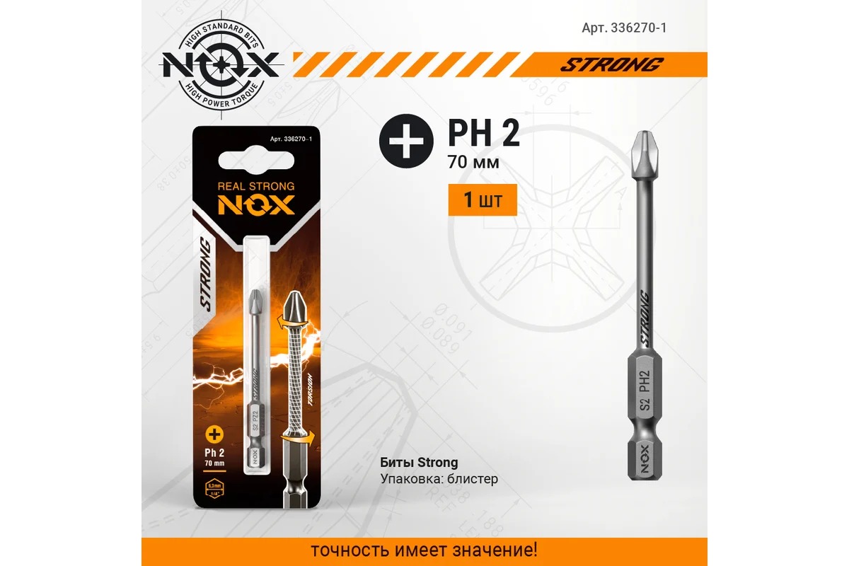 Бита Nox torsion E6,3 Ph2-70, 1 шт карта STRONG (336270-1)