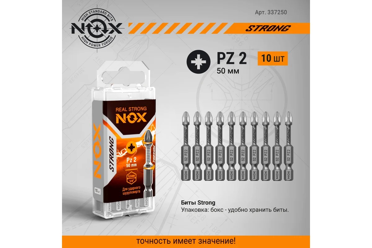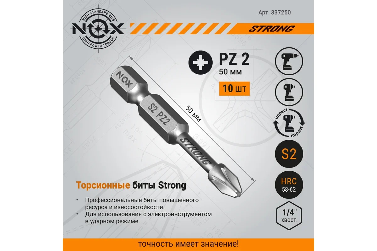 Бита Nox torsion E6,3 Pz2-50, 10 шт бокс STRONG (337250)