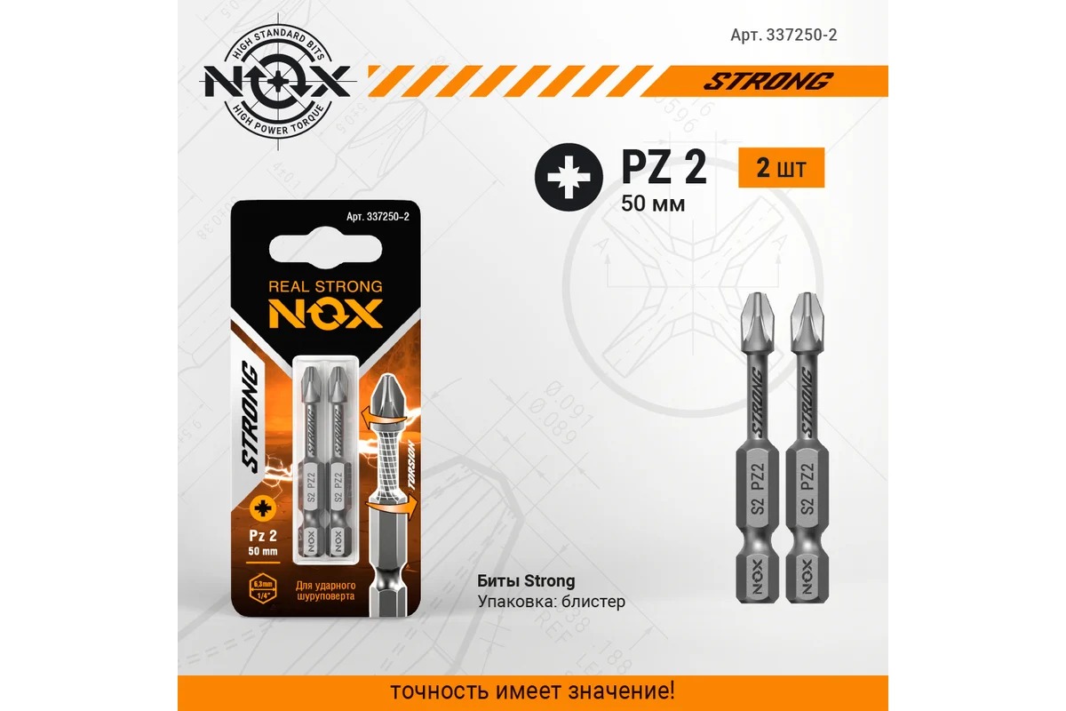 Бита Nox torsion E6,3 Pz2-50, 2 шт карта STRONG (337250-2)