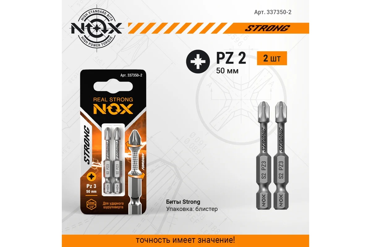 Бита Nox torsion E6,3 Pz3-50, 2 шт карта STRONG (337350-2)
