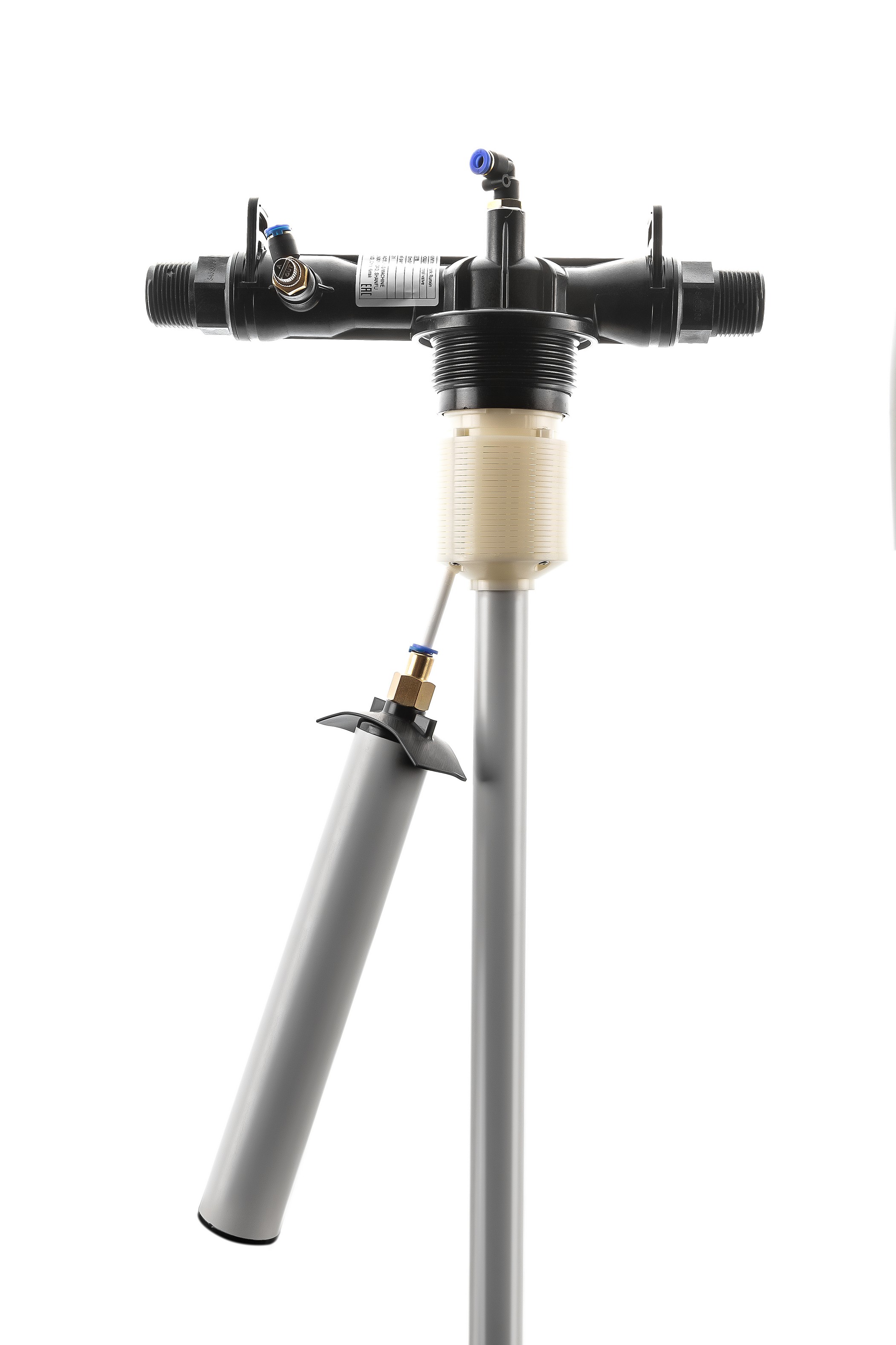 Аэрационная колонна играет роль контактной камеры, в которой происходит интенсивное окисление примесей воды (прежде всего железа), отделение и удаление лишнего воздуха. Клапан выполняет двойную функцию. Во время работы фильтра в режиме фильтрации он выпускает лишний воздух, накапливающийся в верхней части корпуса, а во время возможных аварийных ситуаций впускает воздух при образовании внутри корпуса разряжения, предохраняя тем самым оборудование.