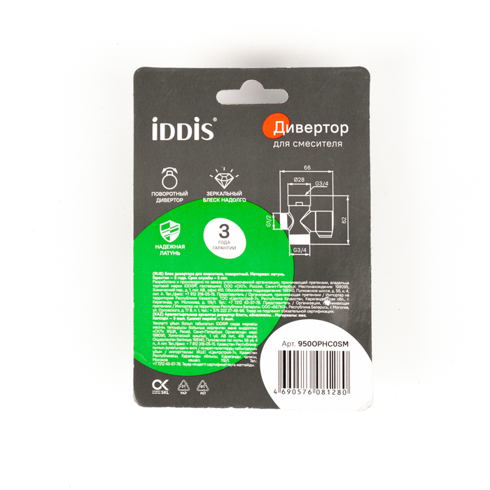 Блок дивертора для смесителя Iddis поворотный хром (950OPHC0SM)