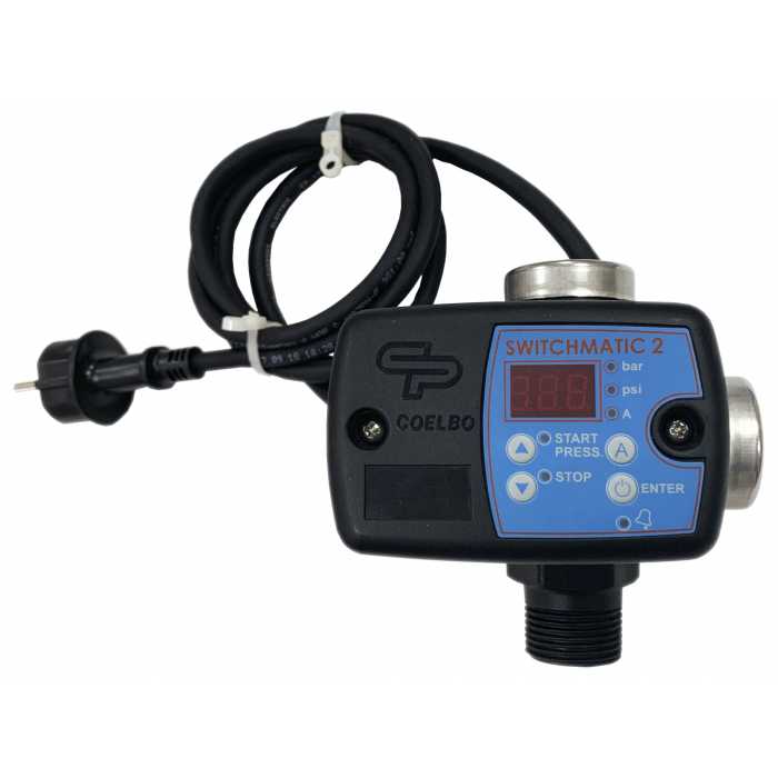 Электрическое подключение идентичное обычному реле давления. Мощность контакта - 16 Ампер, для насосов до 2,2 кВт.Электронный блок управления насосом Coelbo T-Kit Switchmatic 2 предназначен для защиты и управления однофазным насосом систем водоснабжения. Легко заменяет традиционное реле давления (гидравлическое подключение 1", выход на гидроаккумулятор 1").
