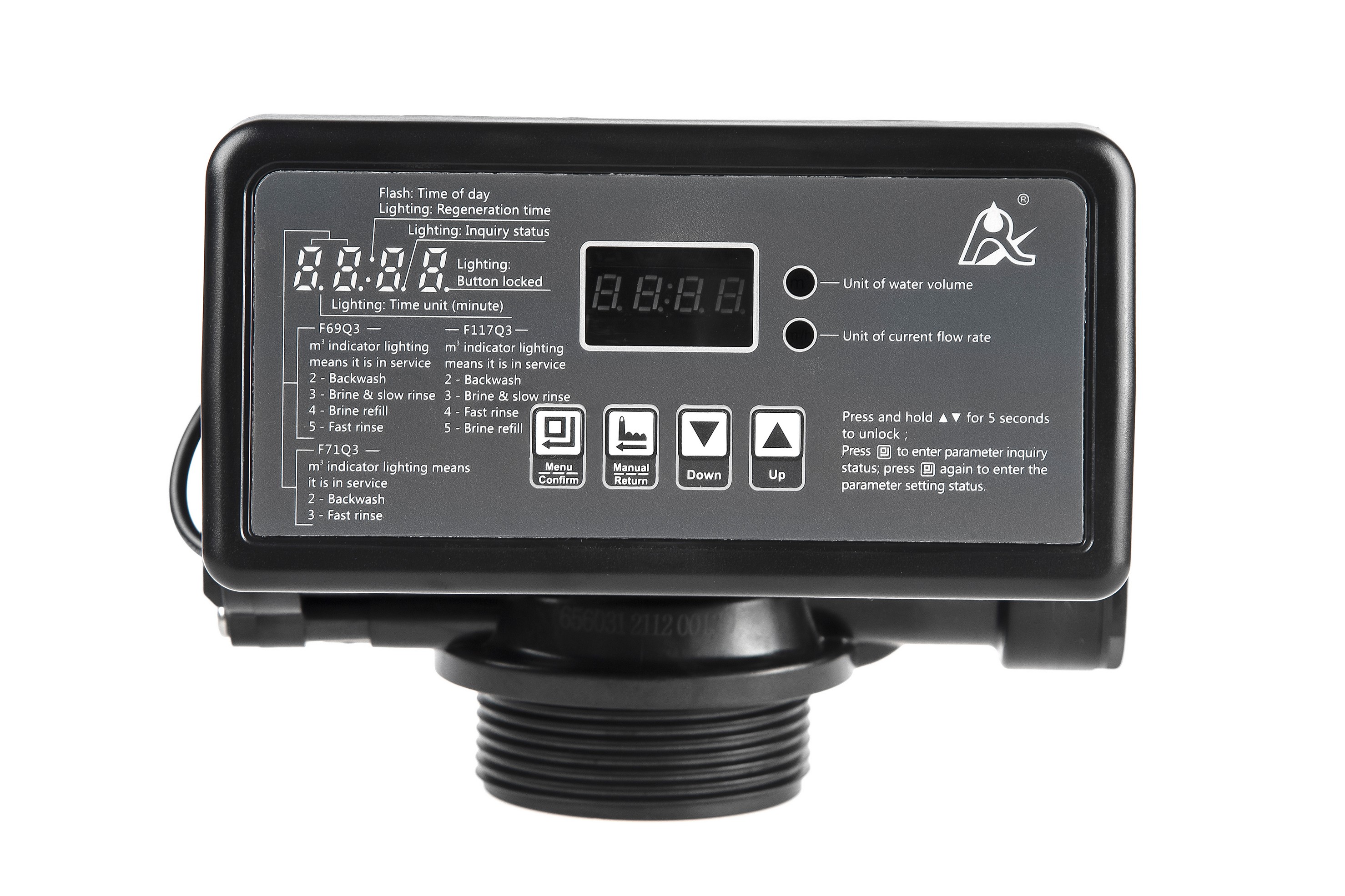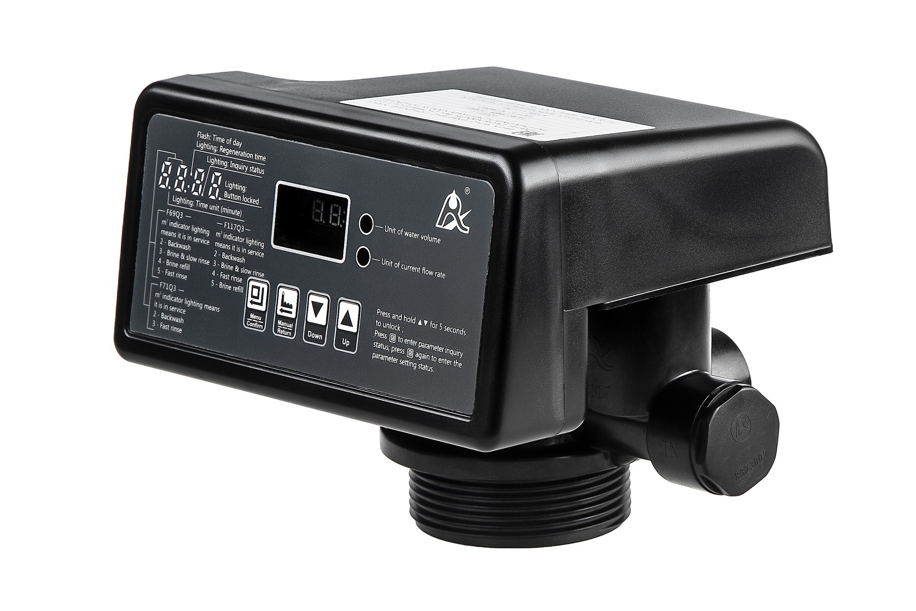 Блок управления ручной реагентный для умягчителей. Предназначен для коммутации потоков воды внутри корпуса скорого фильтра с зернистой загрузкой.