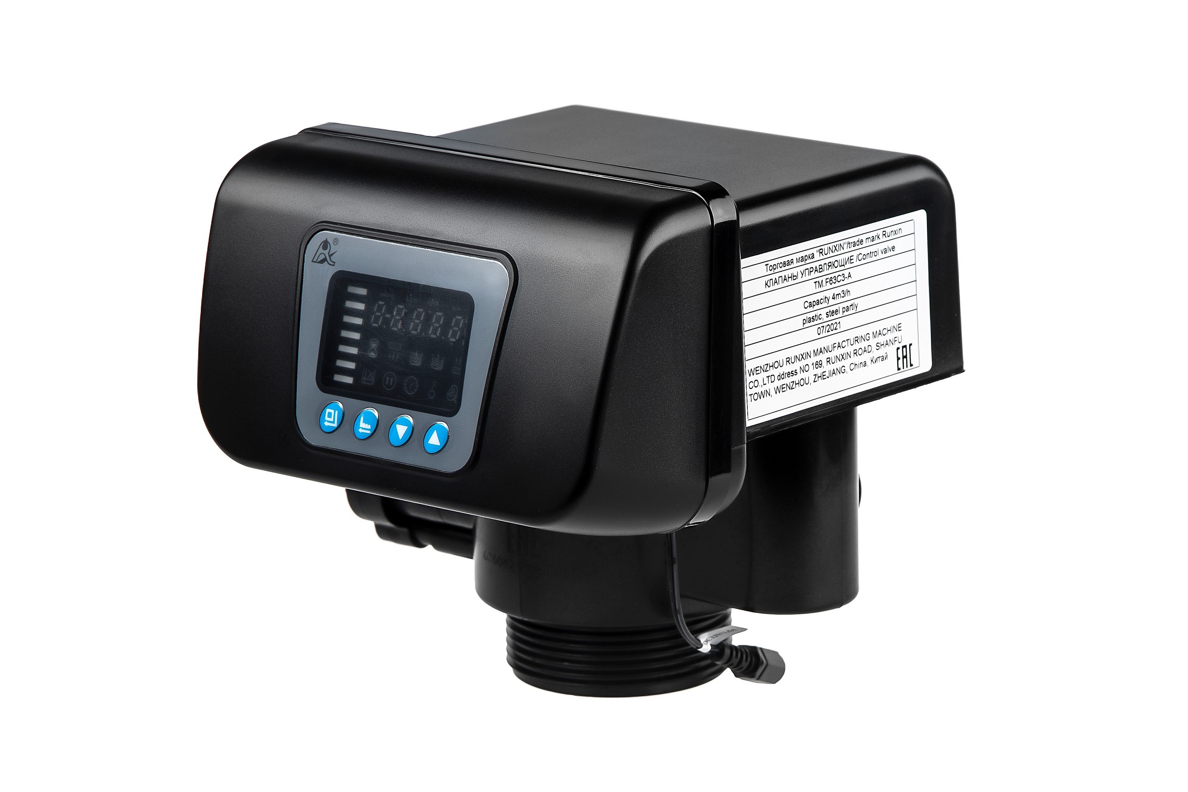 Блок управления автоматический по объему отфильтрованной воды реагентный для умягчителей. Предназначен для коммутации потоков воды внутри корпуса скорого фильтра с зернистой загрузкой.