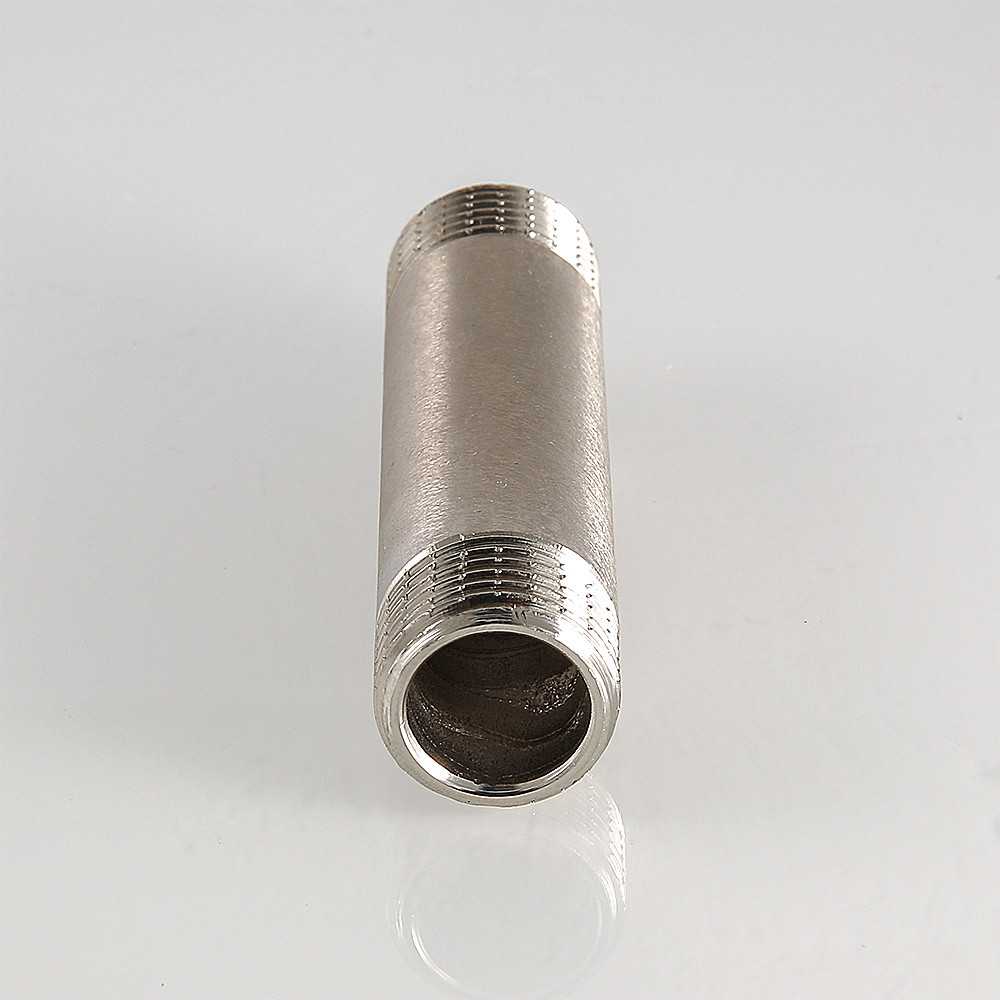 Резьба двухсторонняя наружная трубная цилиндрическая по ГОСТу 6357 (ISO 228, EN 10226). Материал – никилерованная латунь.