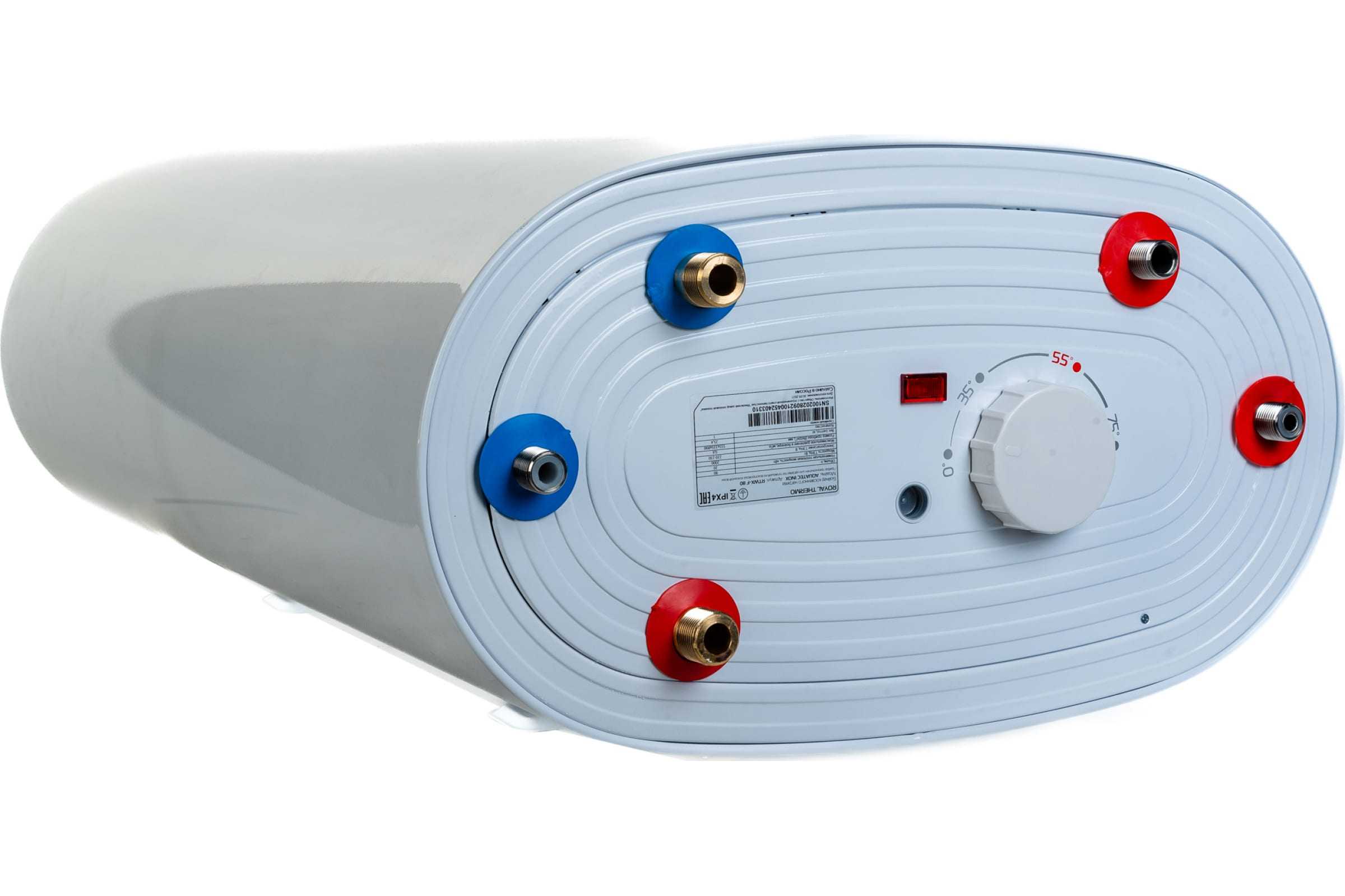 Внутренняя пенополиуретановая теплоизоляция сохраняет температуру нагретой воды, что уменьшает теплопотери и экономит электроэнергию.