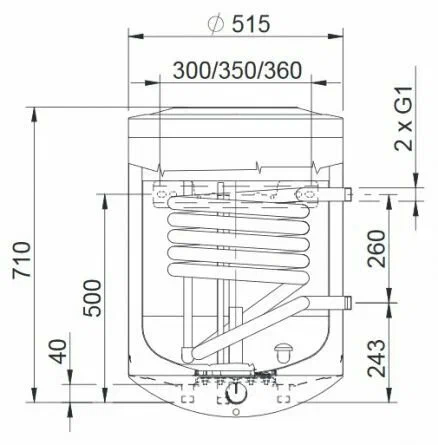 Stout SWH-1110-000150 150 - напольный бойлер косвенного объемом 150 литров с рециркуляцией горячего водоснабжения и возможностью установки электрического ТЭНа.