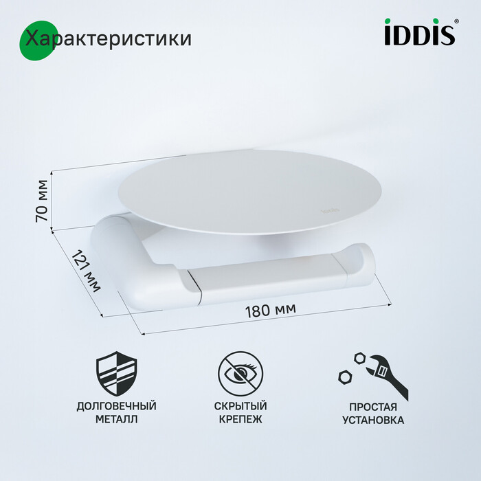 Бумагодержатель NOA с овальной полкой нержавеющая сталь белый матовый Iddis (NOAWT00i43)