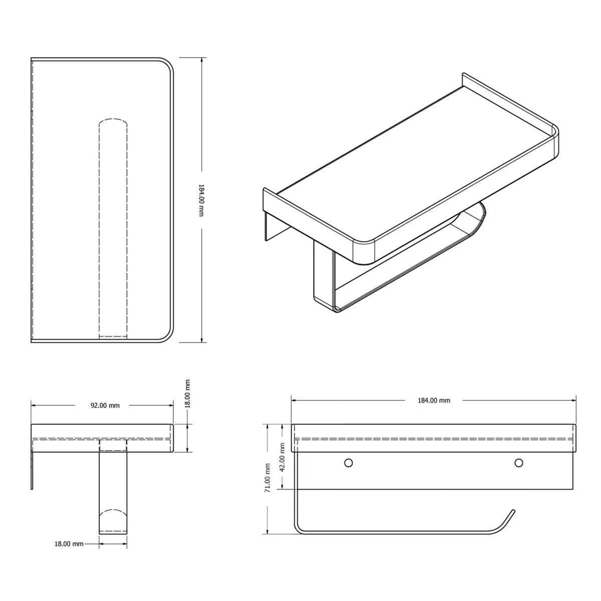 Бумагодержатель с полкой для телефона Azario хром (AZ-688)