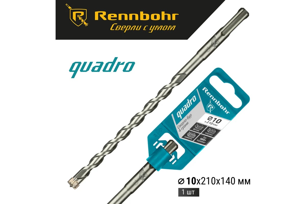 Буры по бетону RENNBOHR QUADRO предназначены для сверления отверстий в бетоне (в т.ч. армированном), кирпиче, граните, клинкере, а также искусственном и натуральном камне.