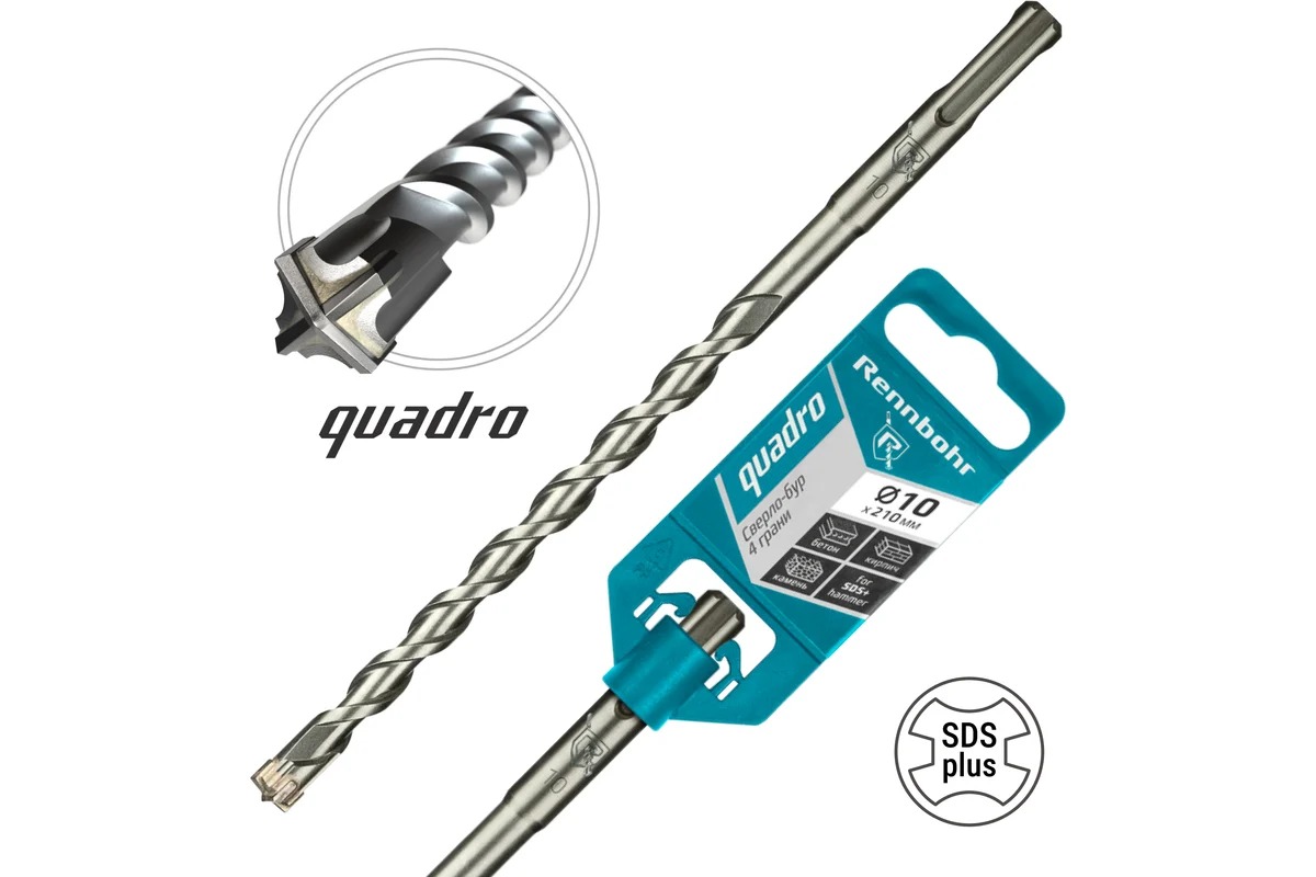Бур для перфоратора SDS+ 10х210 мм. Rennbohr Quadro (4 грани) (511021)
