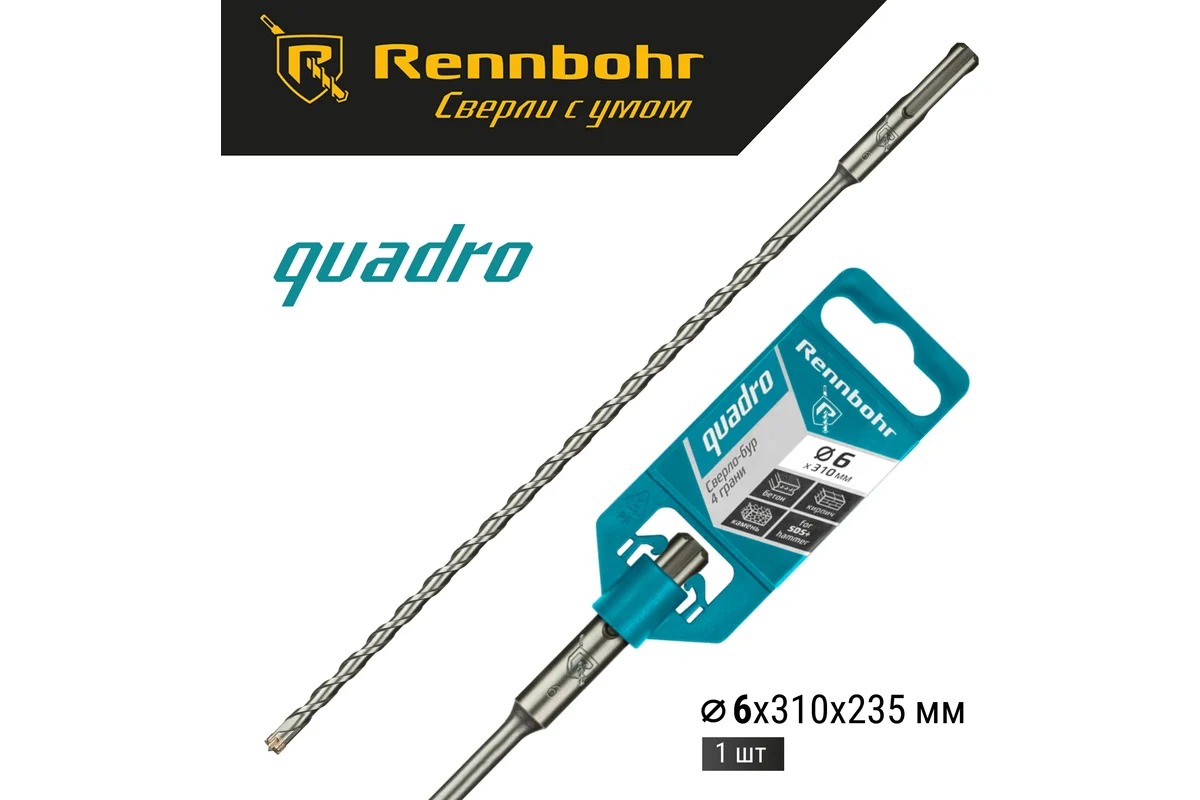 Бур для перфоратора SDS+ 6х310 мм. Rennbohr Quadro (4 грани) (510631)