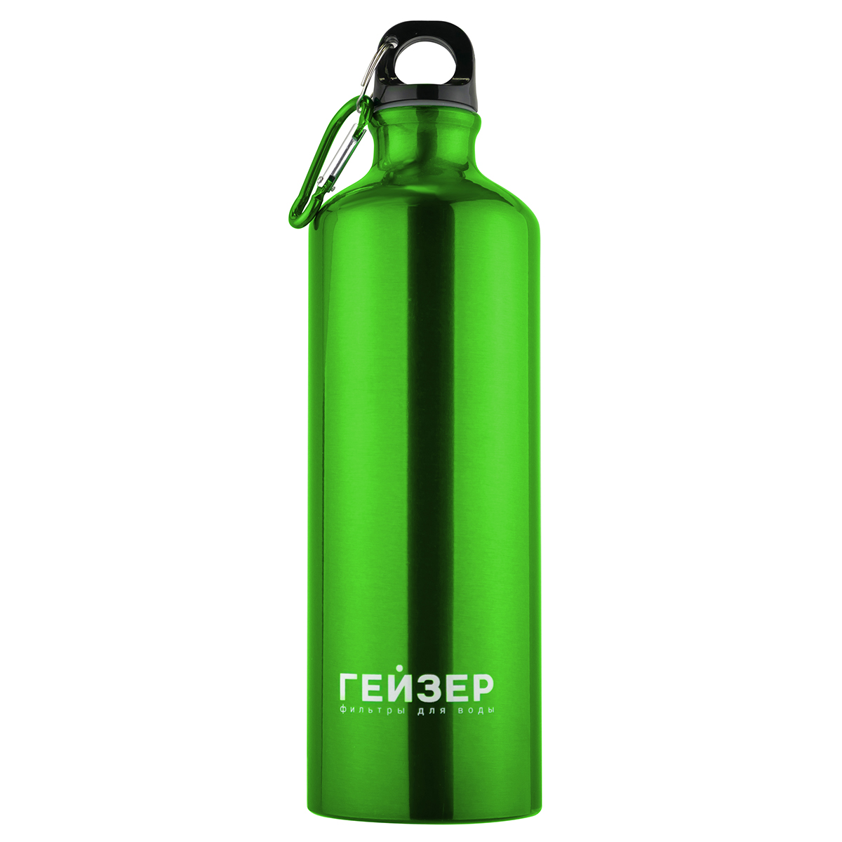 Бутылка для воды с карабином, зеленая (с логотипом, 700 мл., алюминий) (50167)